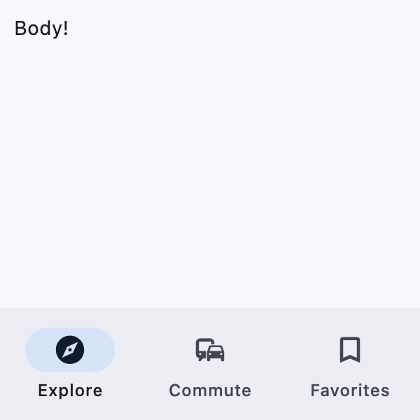 ft.NavigationBarDestination(icon=ft.Icons.COMMUTE, label="Commute"),